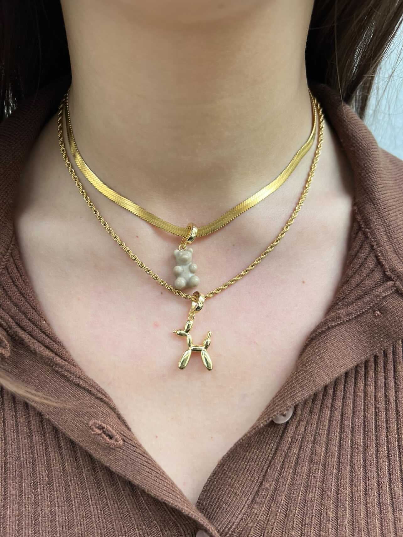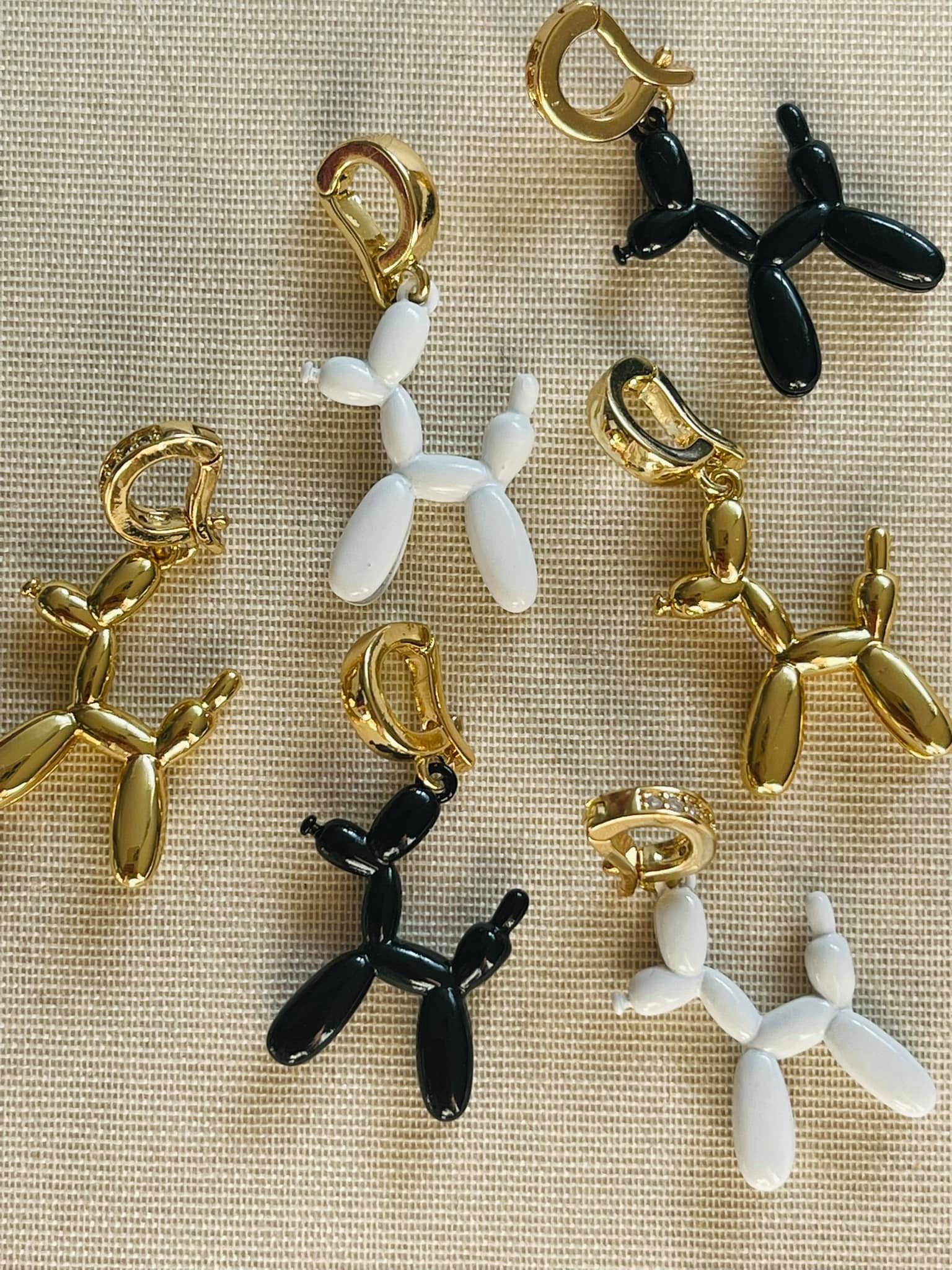 Die bunten Ballonhunde bestehen aus Messing und sind mit einer Emaille-Beschichtung überzogen. Die goldfarbenen bestehen ebenfalls aus Messing mit einer 18k Goldbeschichtung.