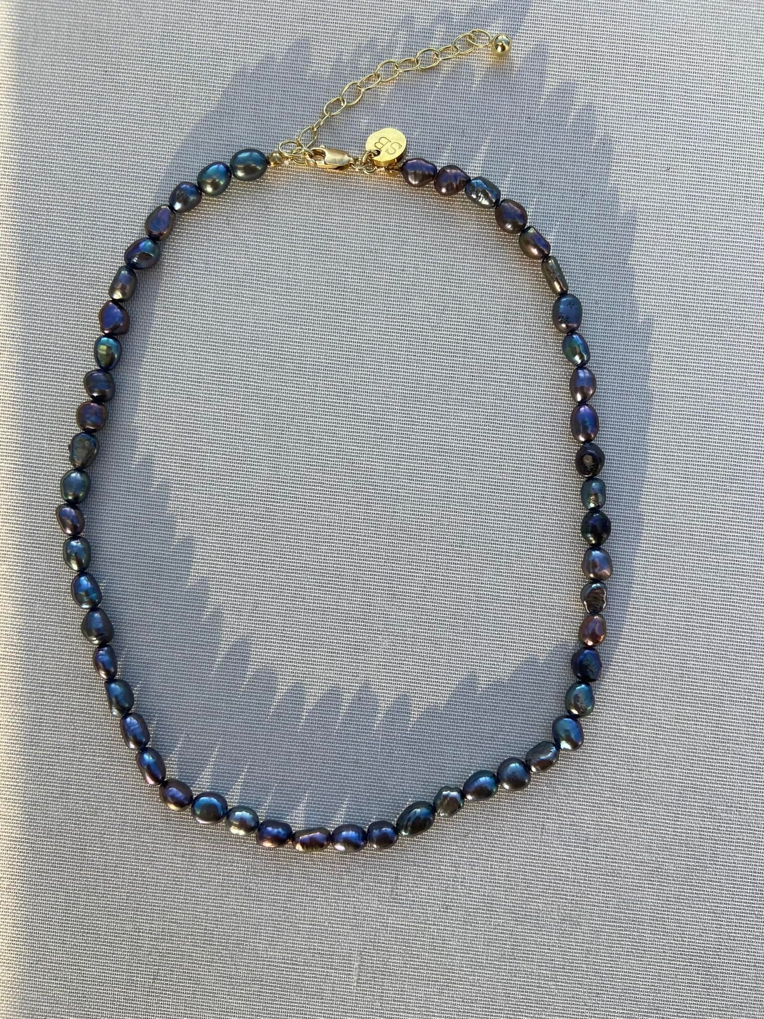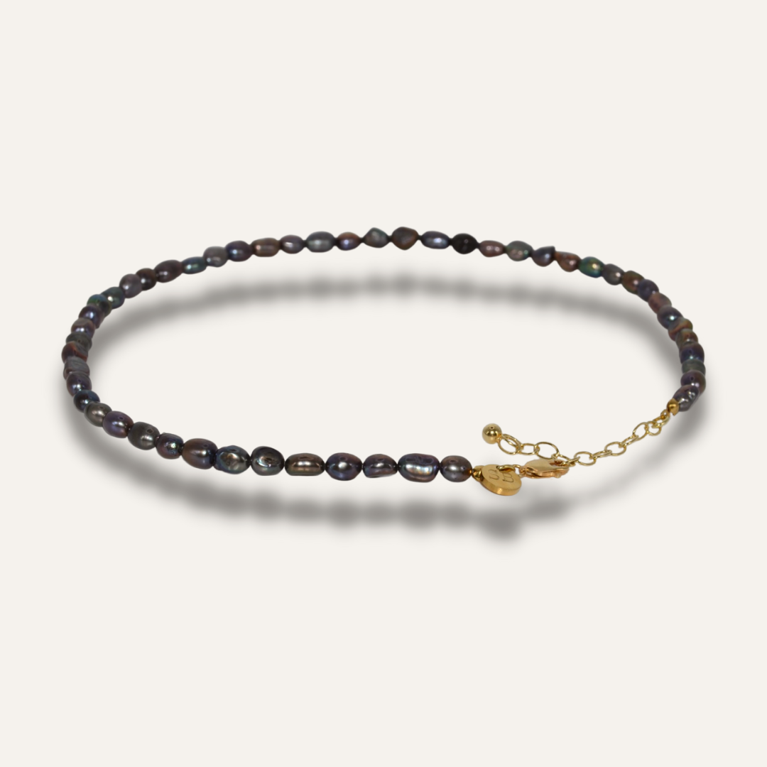 Halskette aus echten Tahiti Süßwasserperlen mit 18 k vergoldetem Doublé Karabinerverschluss.