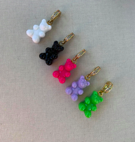 Die Bären bestehen aus Harz mit einer Stiftöse aus 925 Silber mit 18 Karätiger Vergoldung.