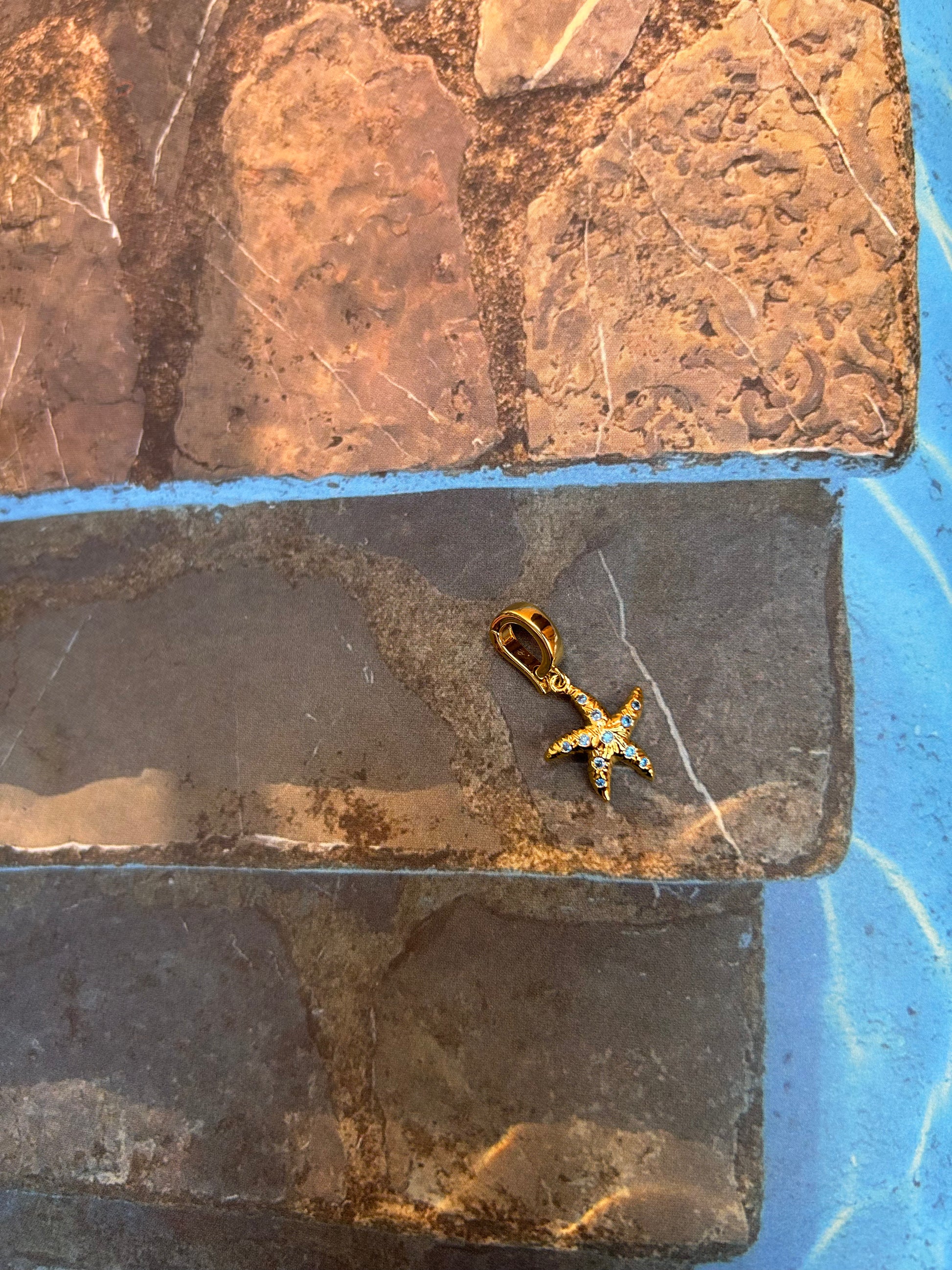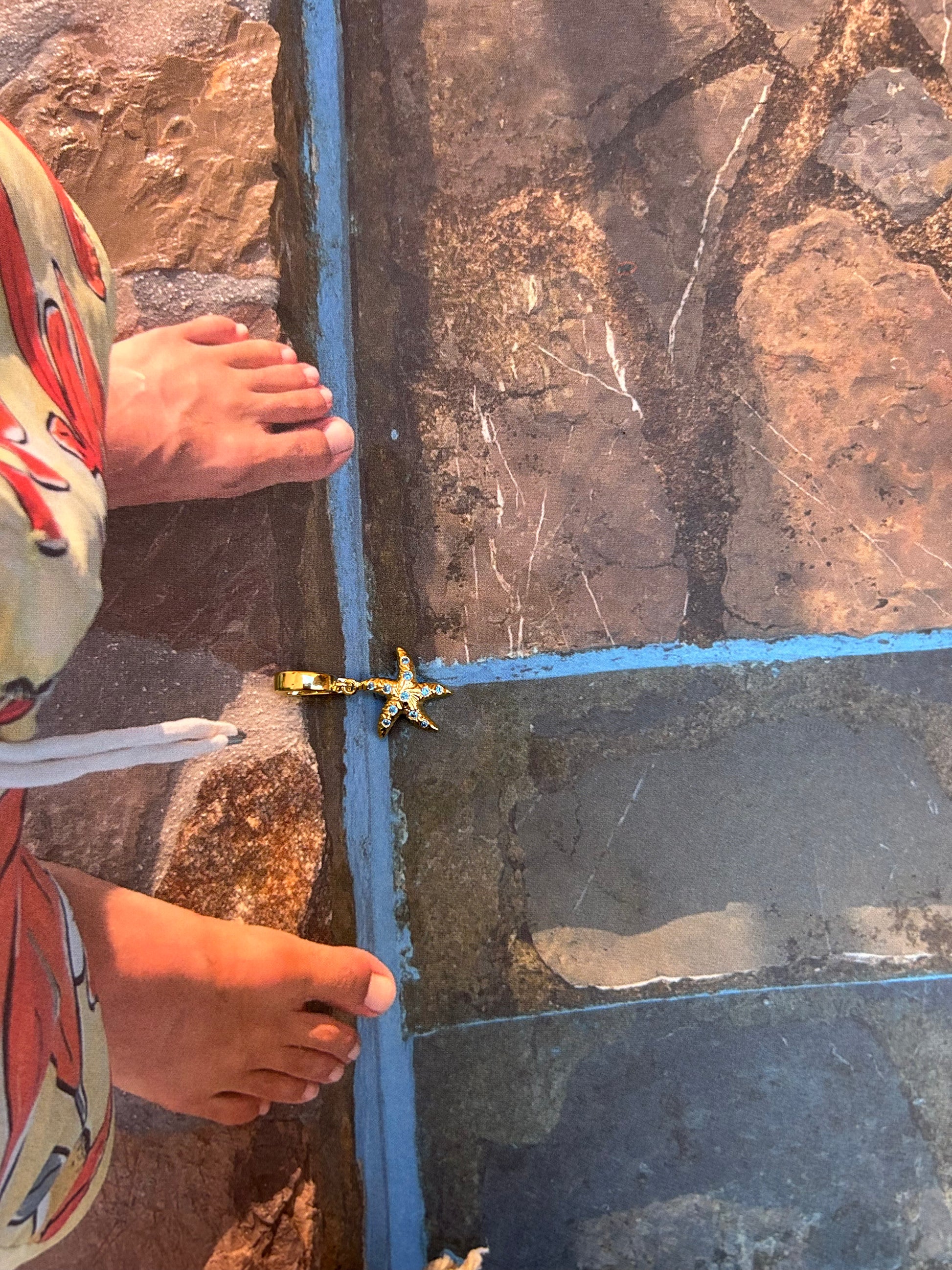 Ein Hauch von Meer auf deiner Haut: Dieser edle Seestern-Anhänger, verziert mit schimmernden blauen Steinen, fängt das Licht und die Tiefe des Ozeans ein. Inspiriert von der Magie des Wassers, steht er für Ruhe, Stärke und inneres Gleichgewicht. Ein stilvolles Statement für alle, die das Meer im Herzen tragen – perfekt als besonderes Geschenk oder als funkelnder Begleiter im Alltag