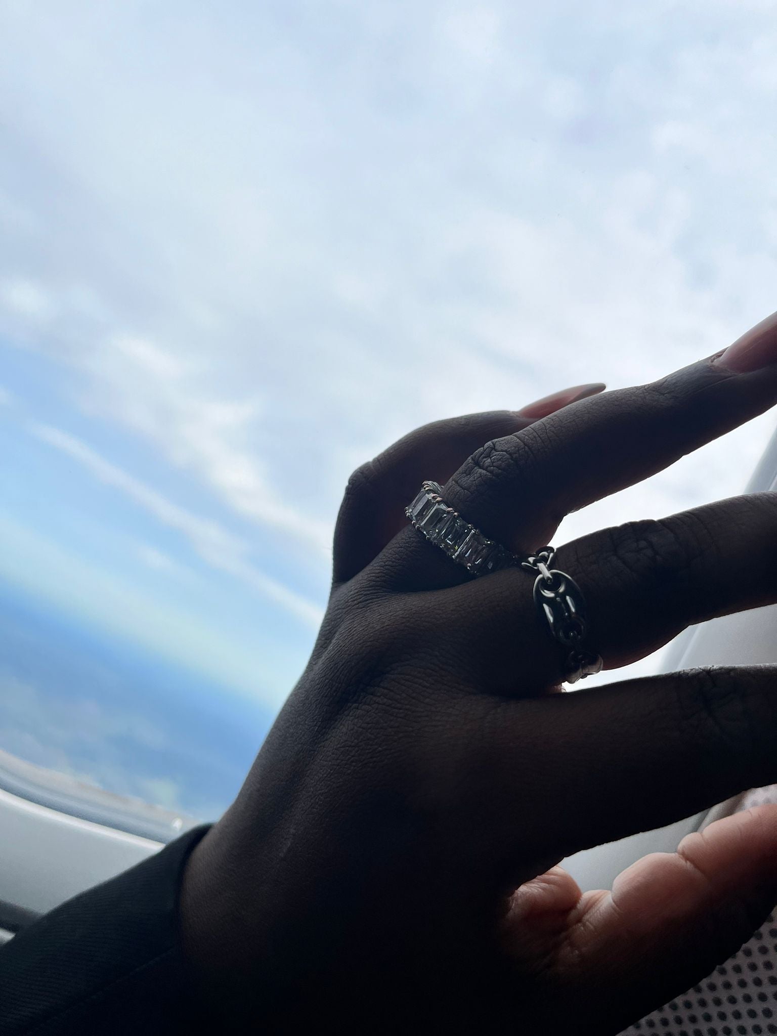 Silberfarbener Ring mit Kaffeebohnen Design.