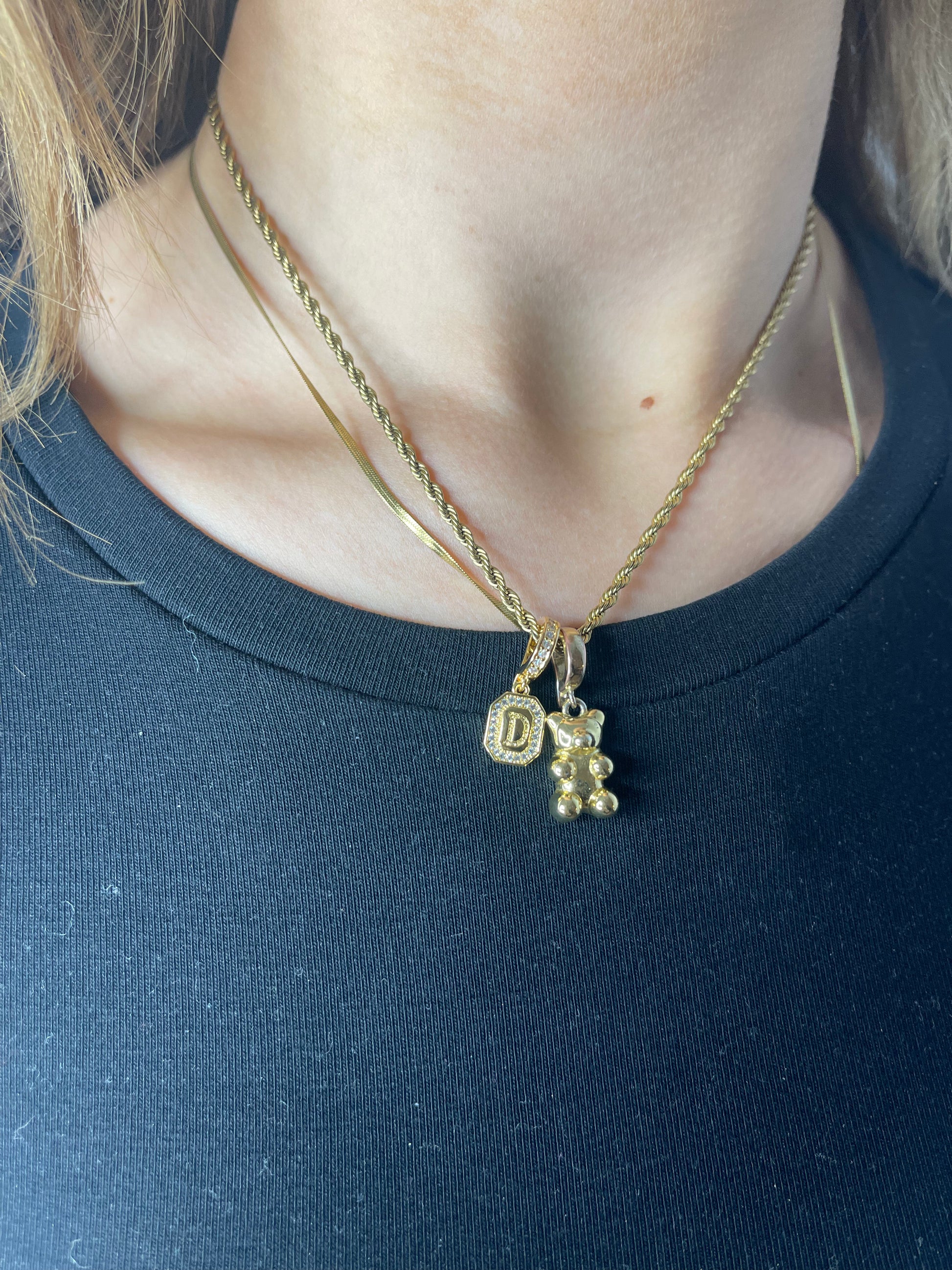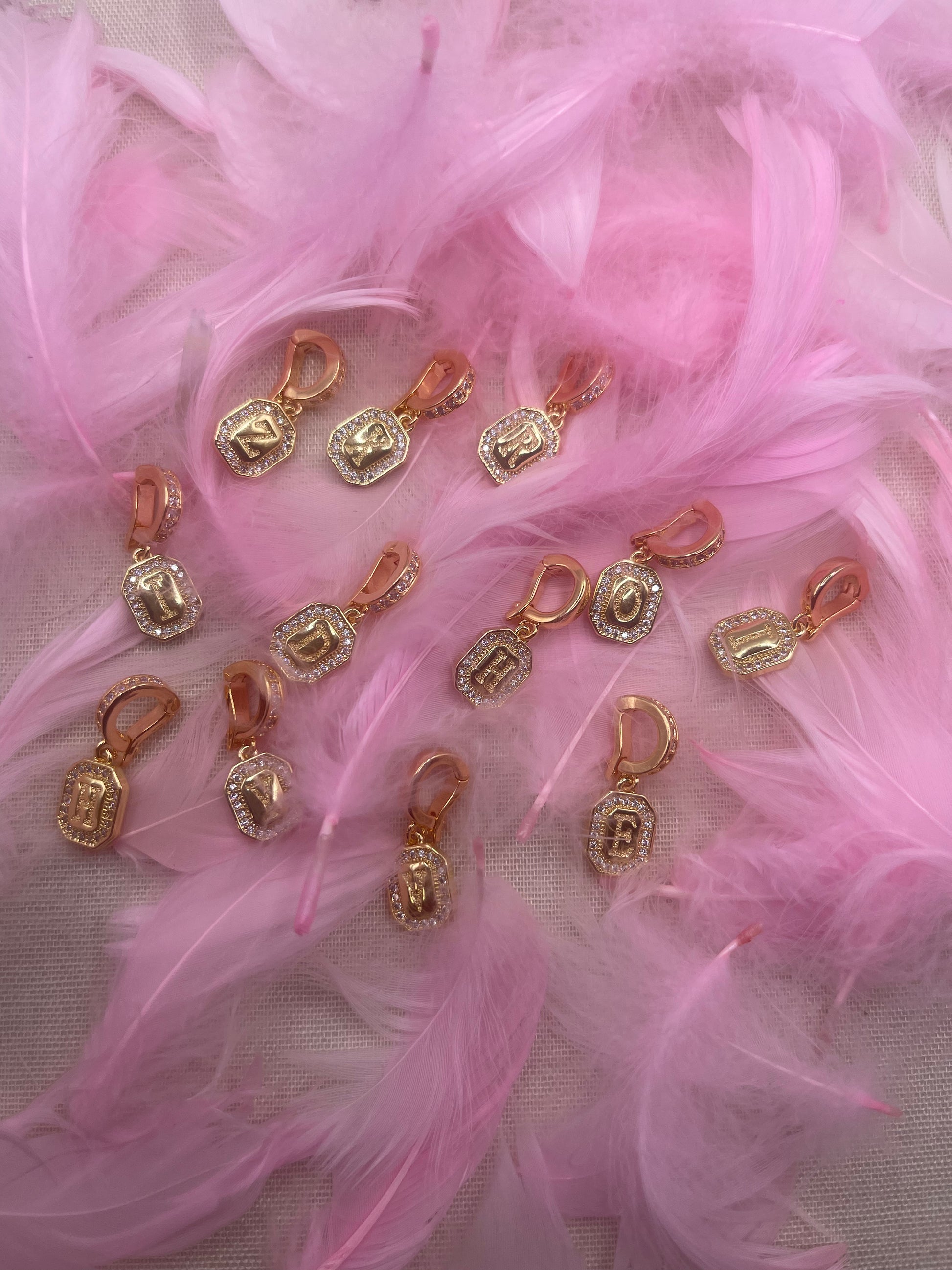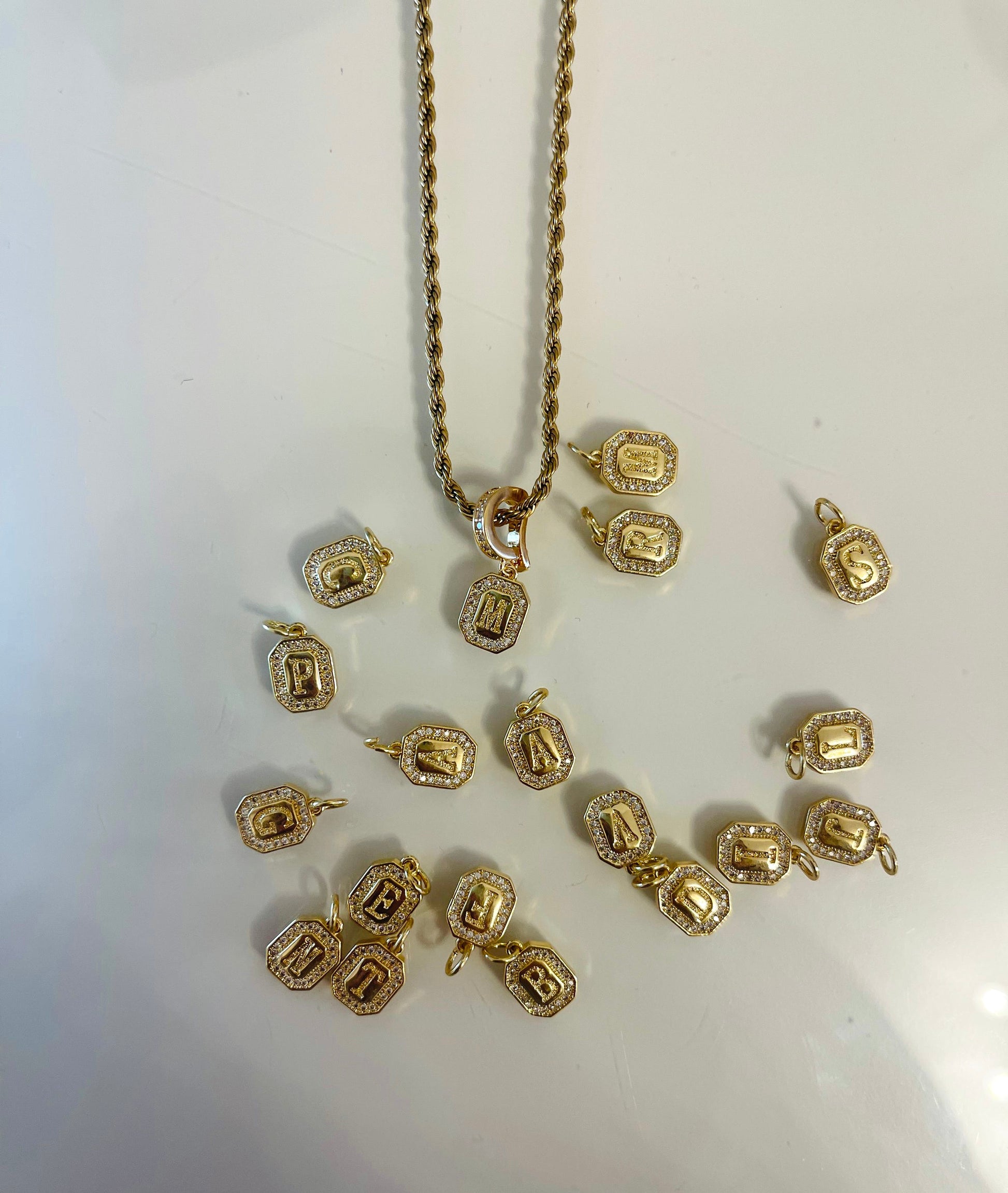 Anhänger mit Zirkonia Steinen verziert und verschiedenen Buchstaben.