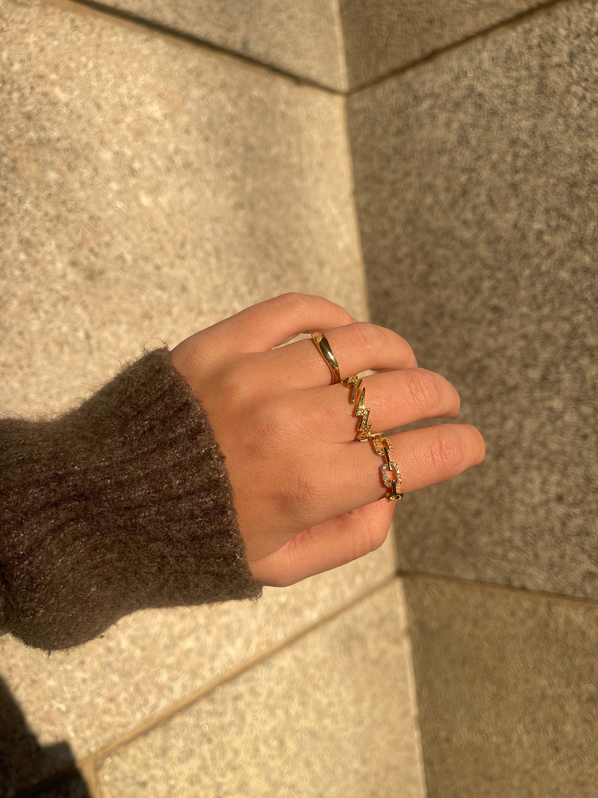 Edelstahl mit einer 18K Vergoldung und mit Zirkonia Steinen besetzt.