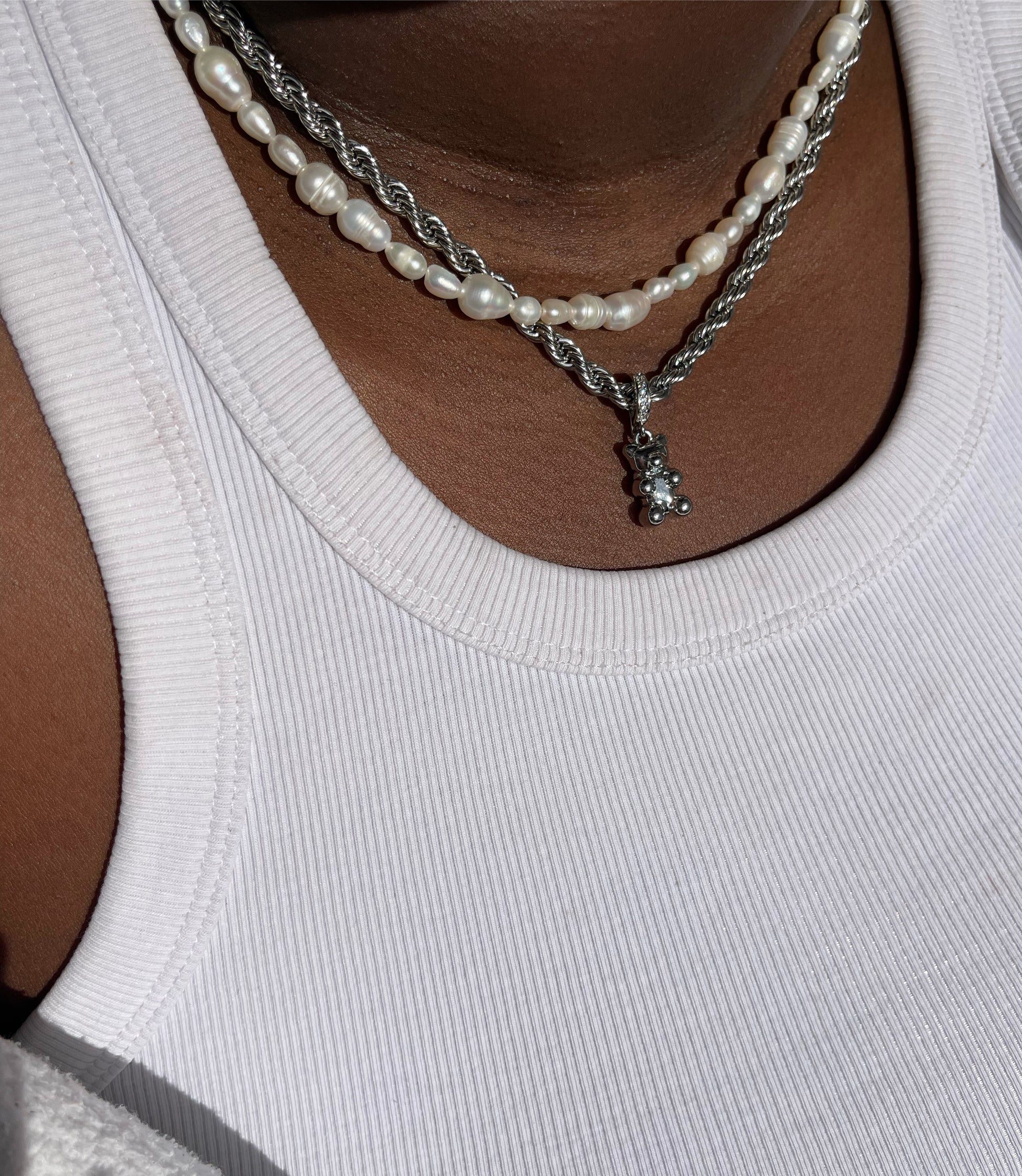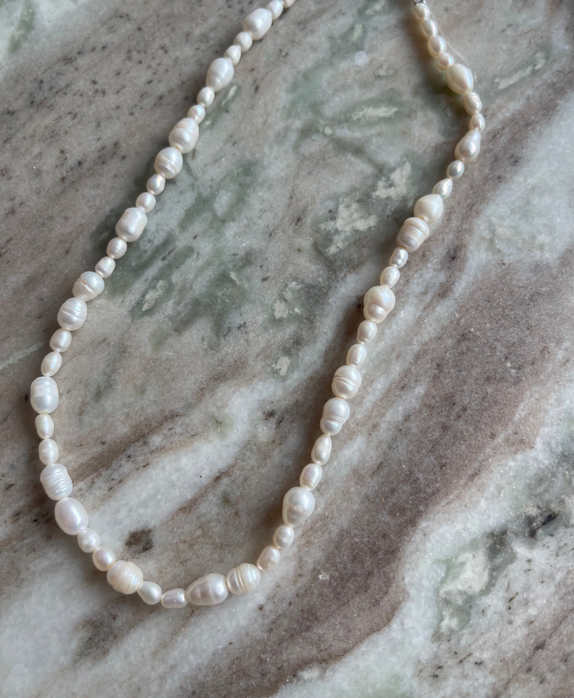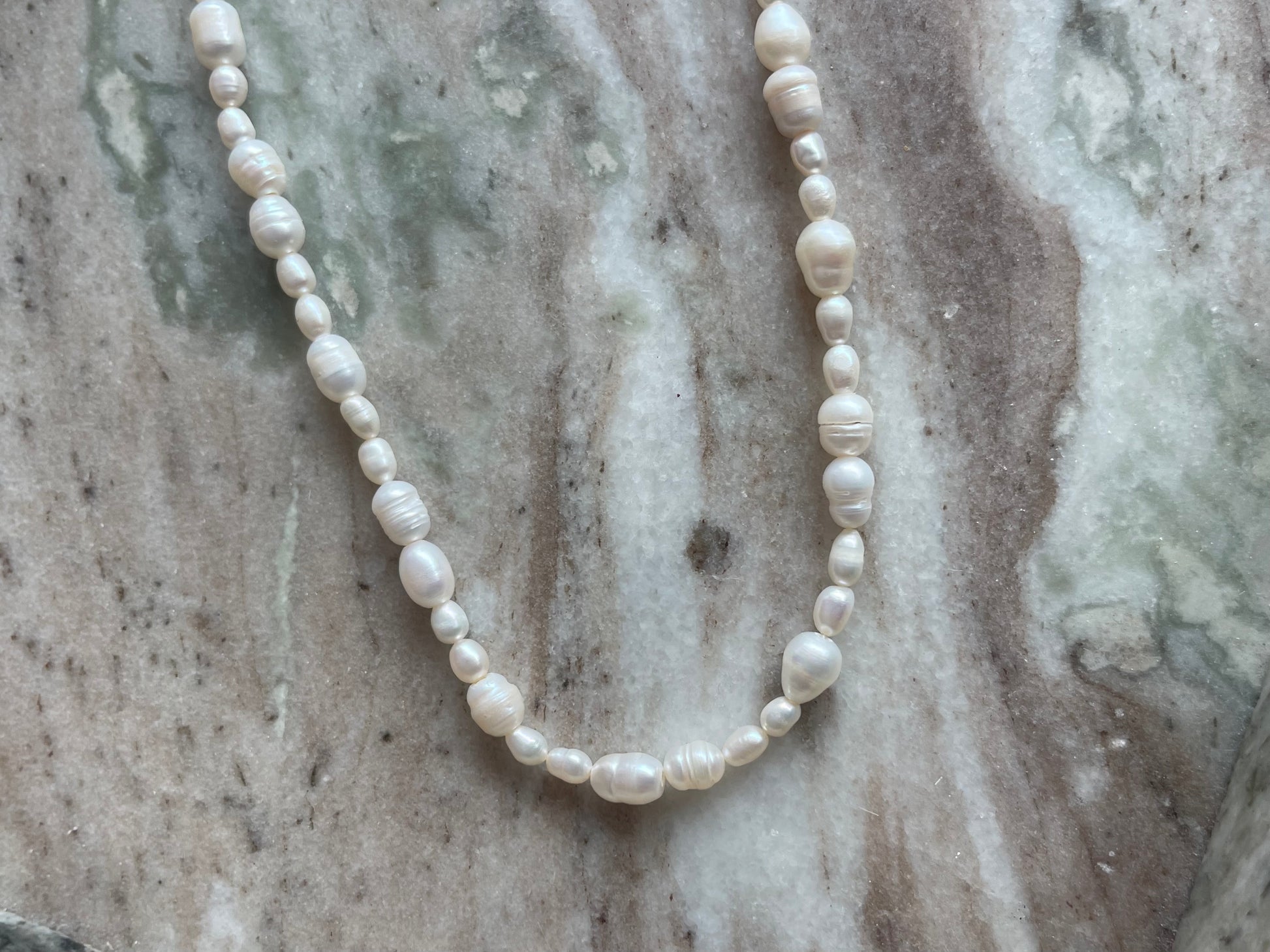 Die Chunky Perlenkette zeichnet sich dadurch aus, dass sie aus verschieden grossen süßwasserperlen besteht und somit jede einzelne Kette ein Unikat ist.