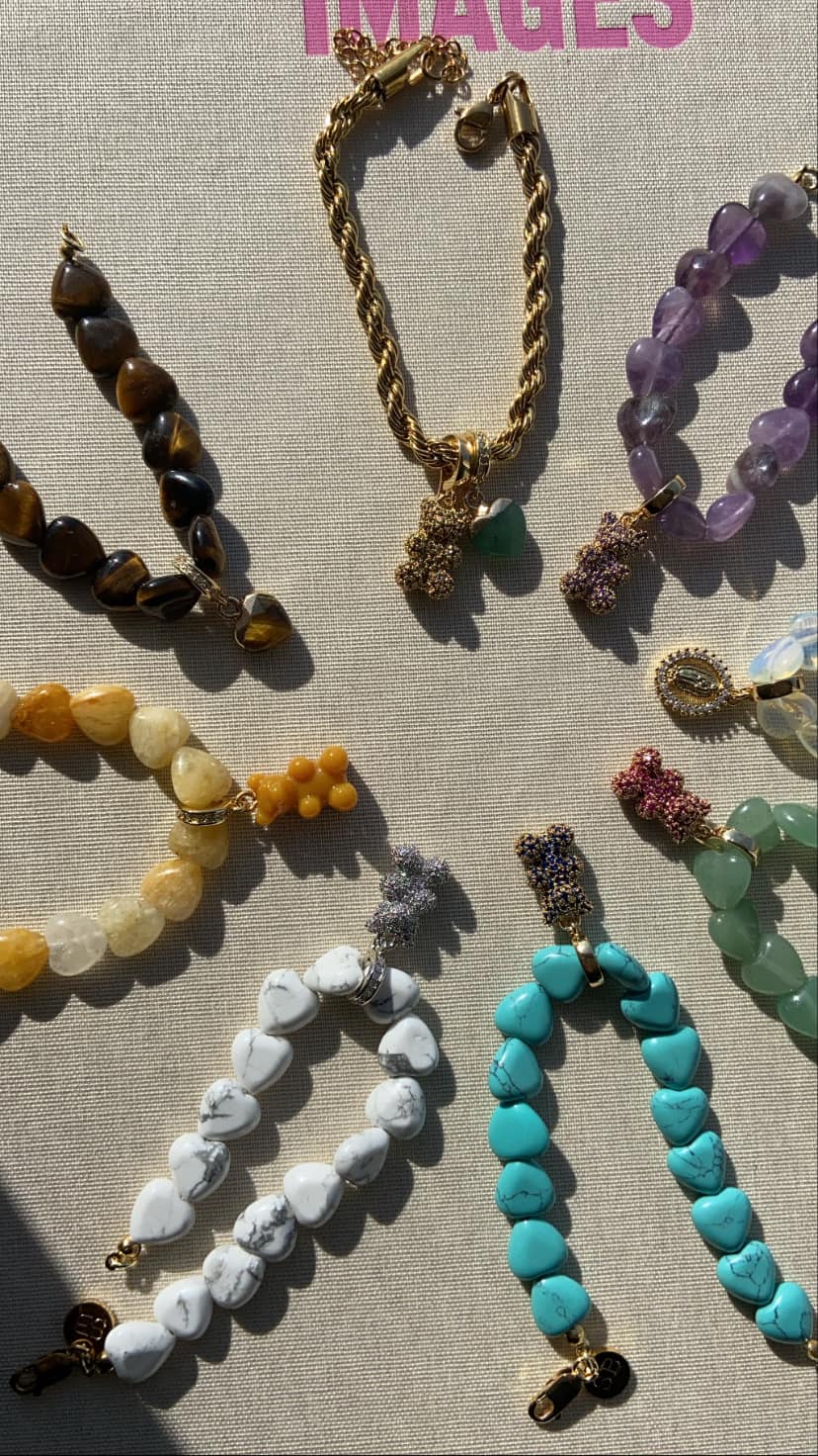 MaterialNatürliche Edelsteine mit 18 k vergoldetem Doublé Karabinerverschluss.