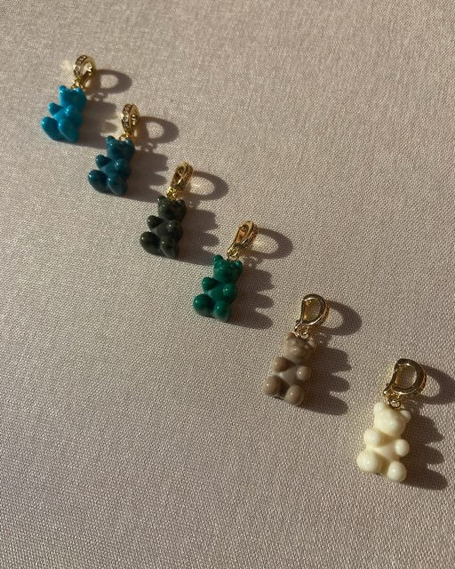 Die Bären bestehen aus Harz mit einer Stiftöse aus 925 Silber mit 18 Karätiger Vergoldung.