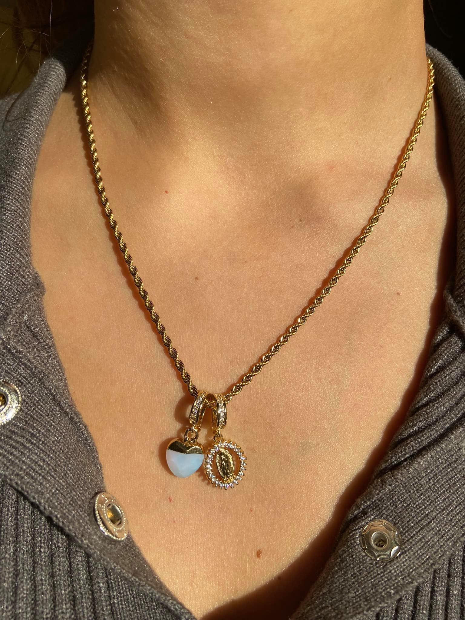 Wähle zwischen einem klassisch goldfarbenen, oder einem mit Zirkoniasteinen besetzten Anhängerverschluss aus Kupfer.