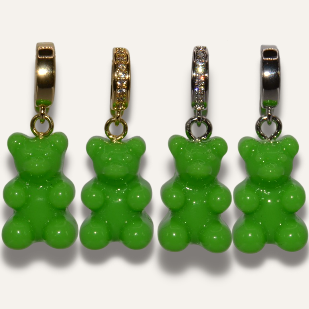 Die Bären bestehen aus Harz mit einer Stiftöse aus 925 Silber mit 18 Karätiger Vergoldung.
