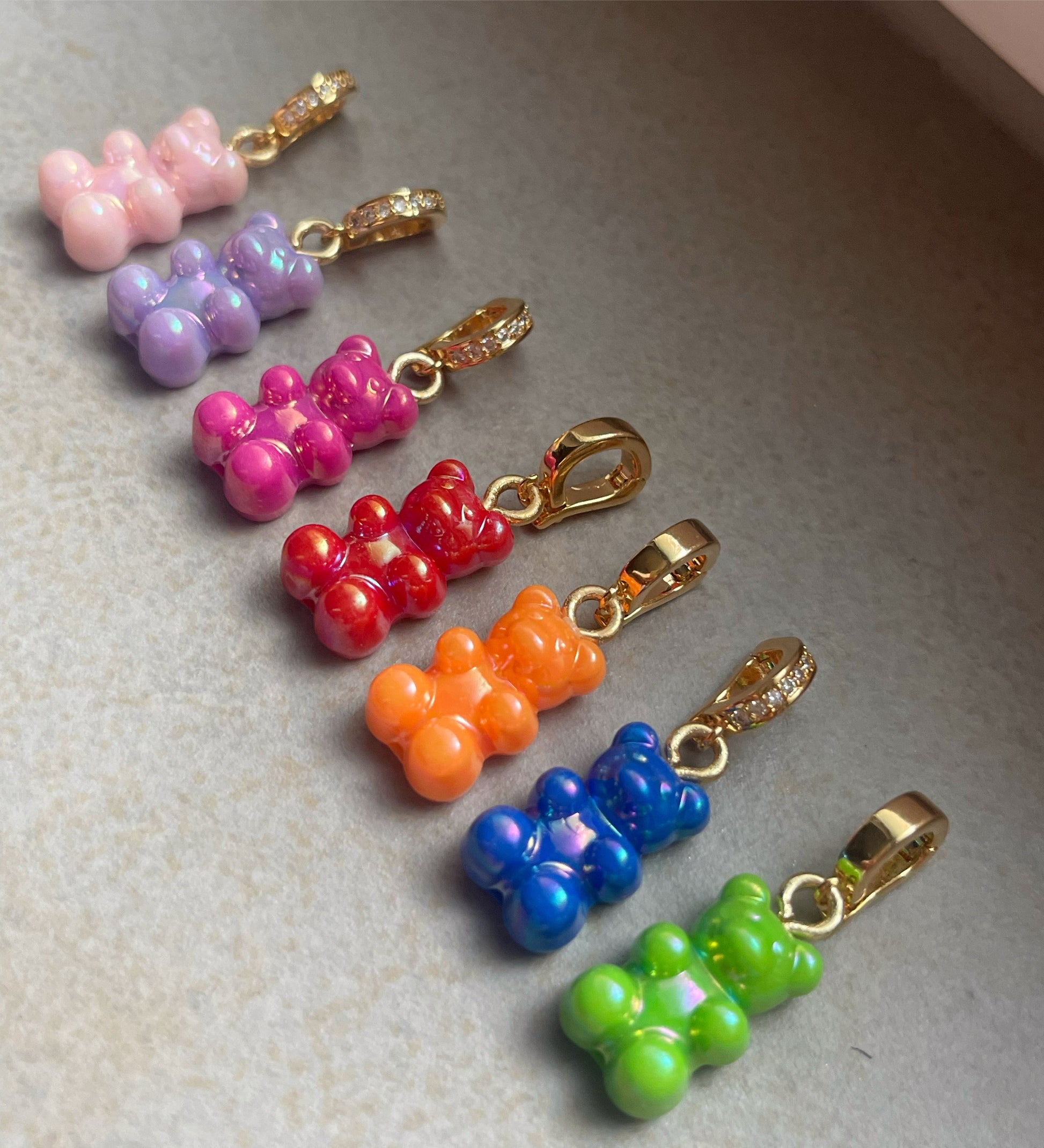 Die Bären bestehen aus Harz mit einer Stiftöse aus 925 Silber mit 18 Karätiger Vergoldung.