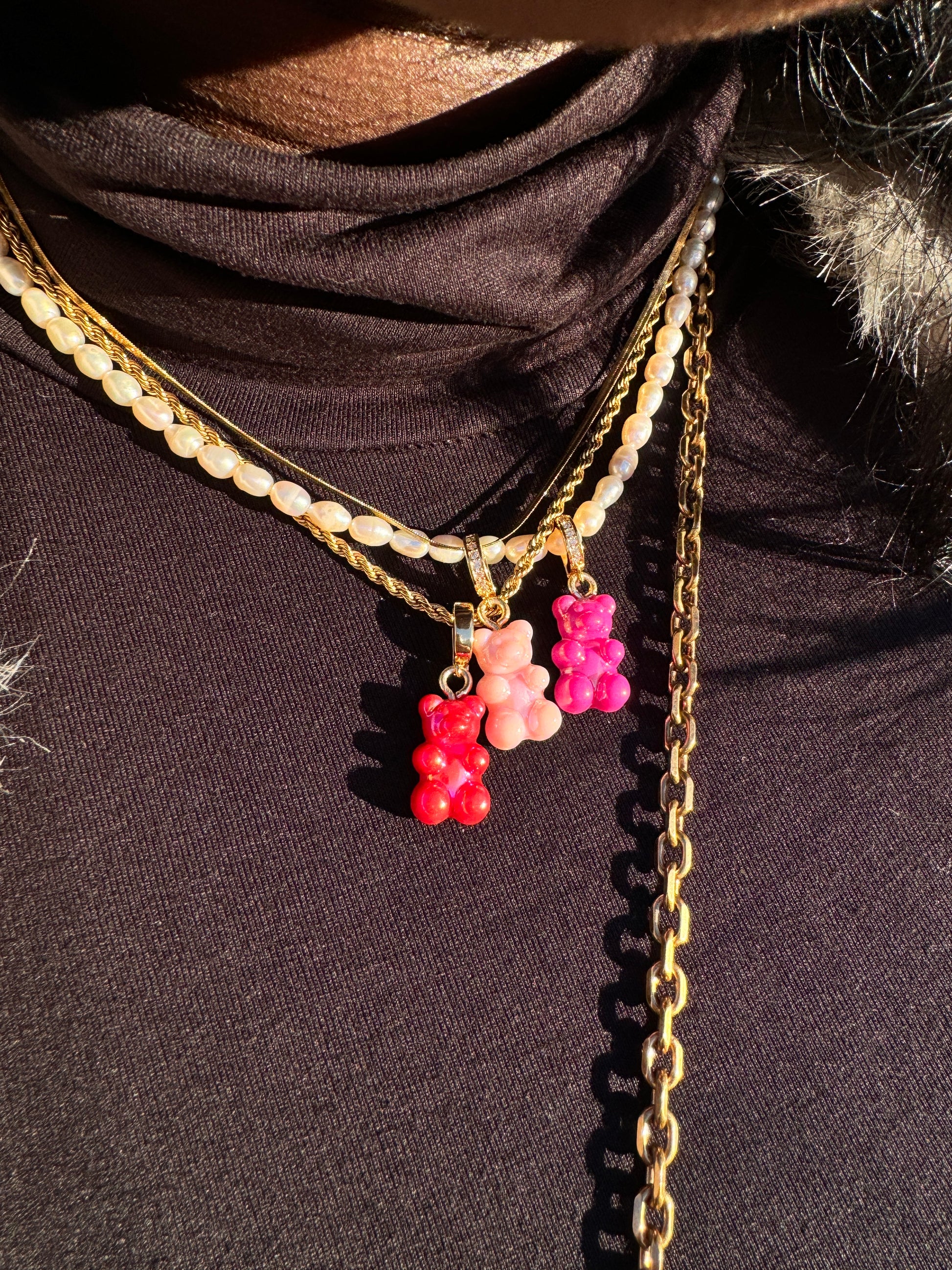 Wähle zwischen einem klassisch goldfarbenen, oder einem mit Zirkoniasteinen besetzten Anhängerverschluss aus Kupfer.