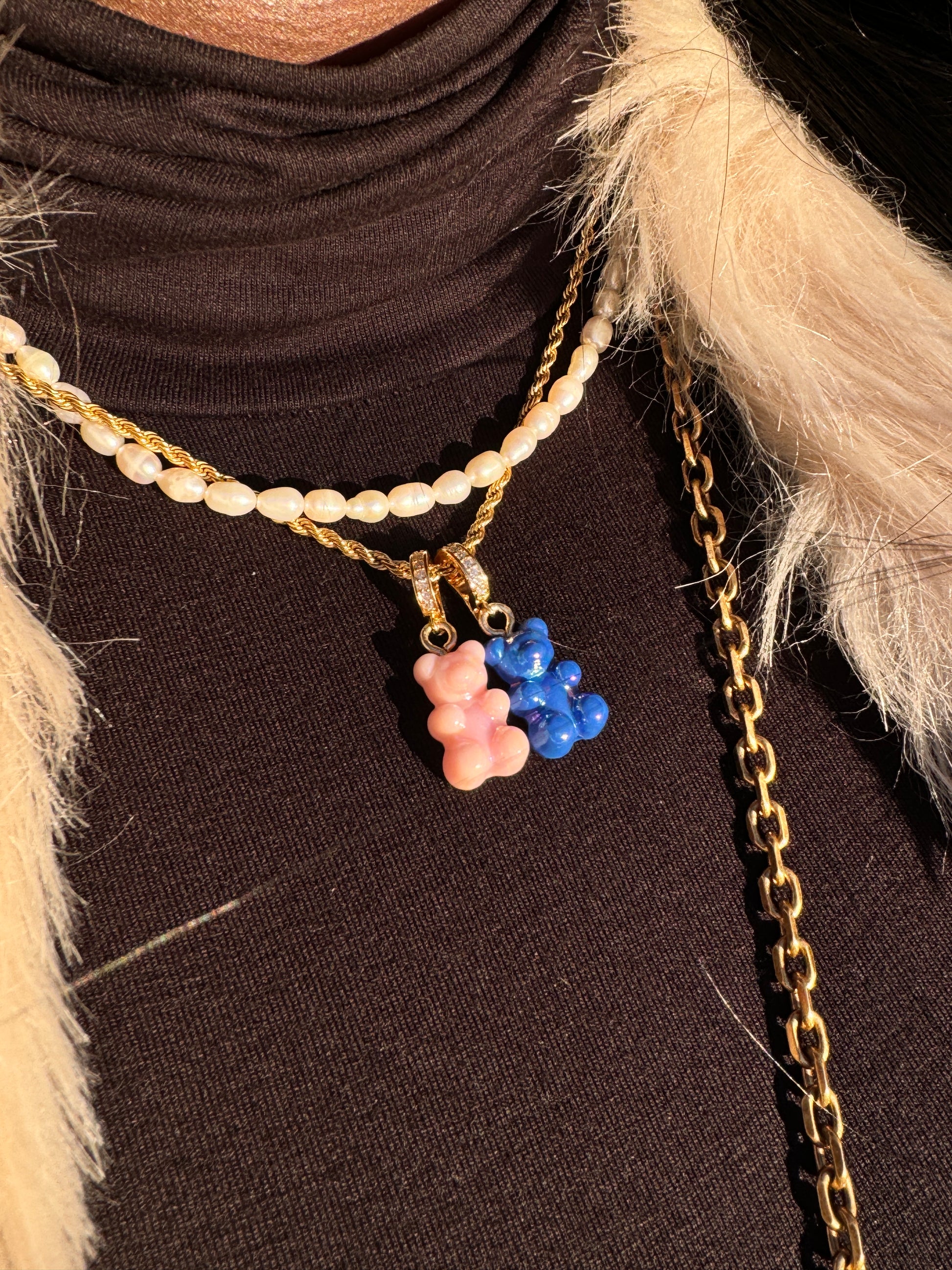 Die Bären bestehen aus Harz mit einer Stiftöse aus 925 Silber mit 18 Karätiger Vergoldung.