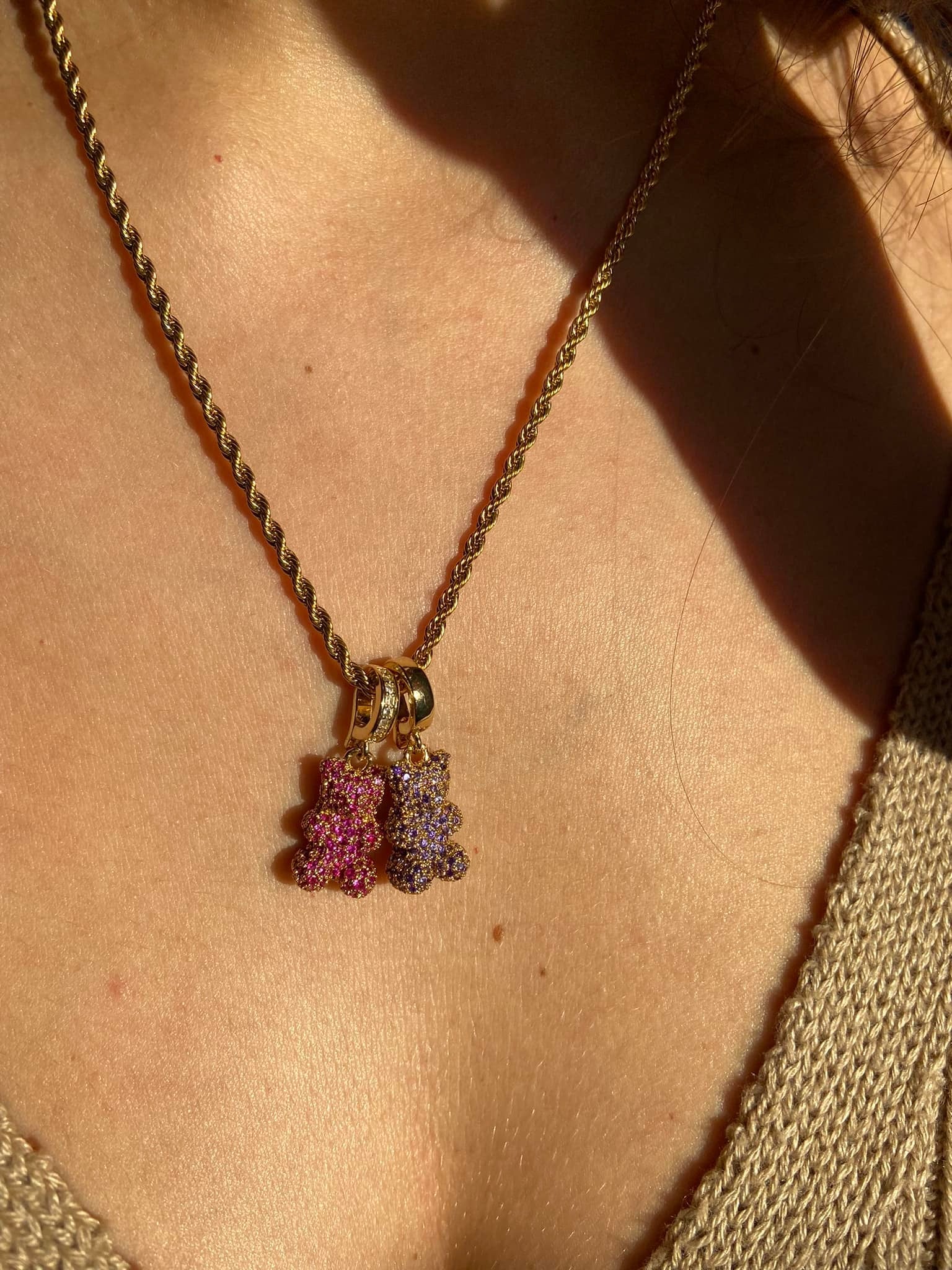 Wähle zwischen einem klassisch goldfarbenen, oder einem mit Zirkoniasteinen besetzten Anhängerverschluss mit einer 18-karätigen Vergoldung.