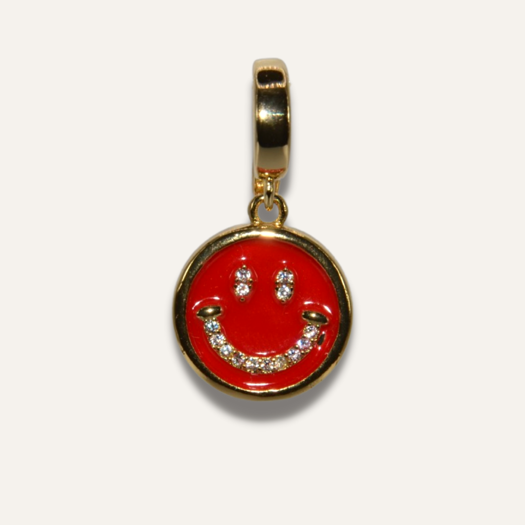 MaterialUnsere Smiley Charms sind aus Messing mit einer 18k Goldbeschichtung und Zirkoniasteinen verziert.