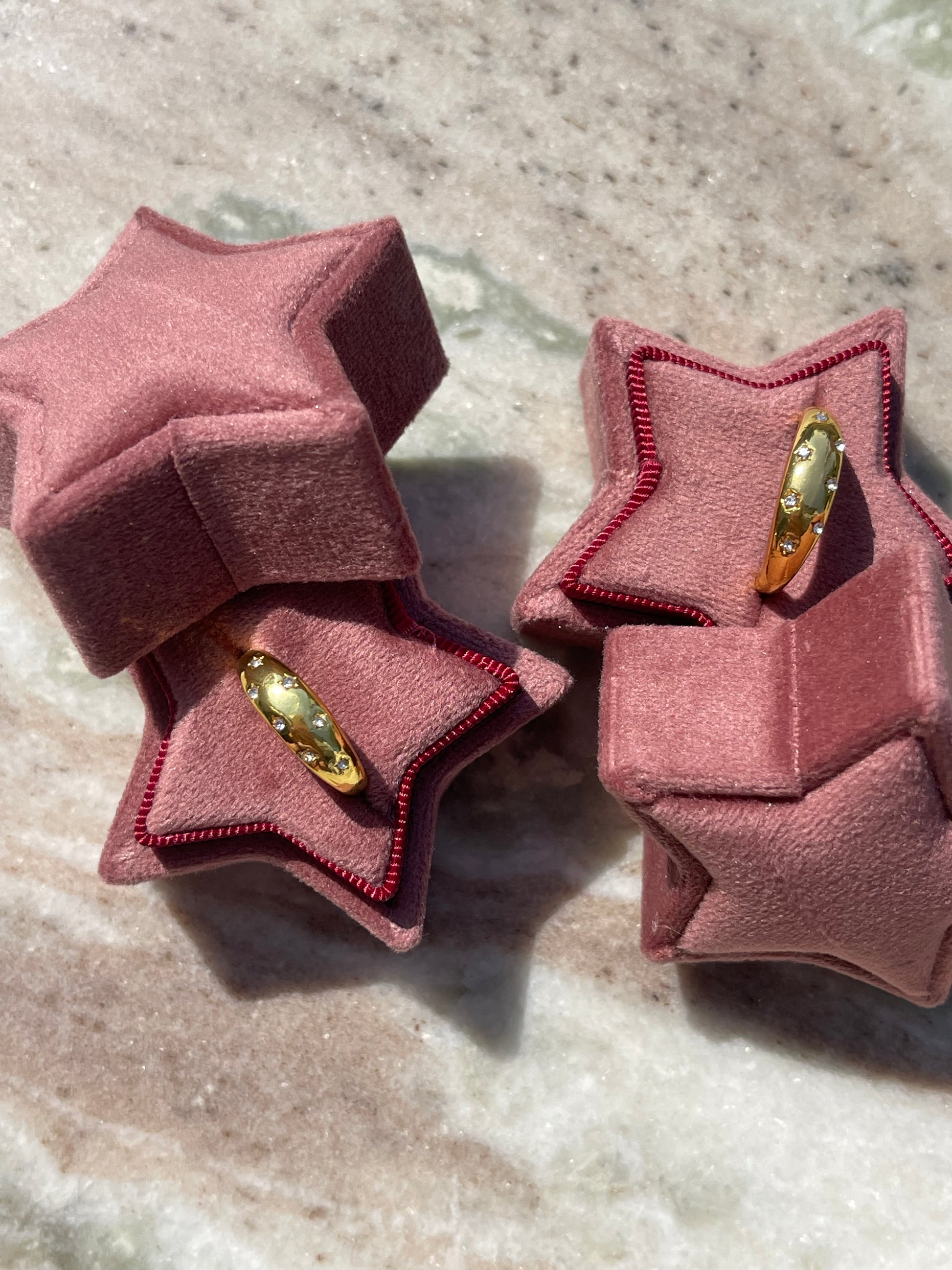 Goldfarbender Ring mit Zirkonia Steinen in Form von Sternen besetzt.