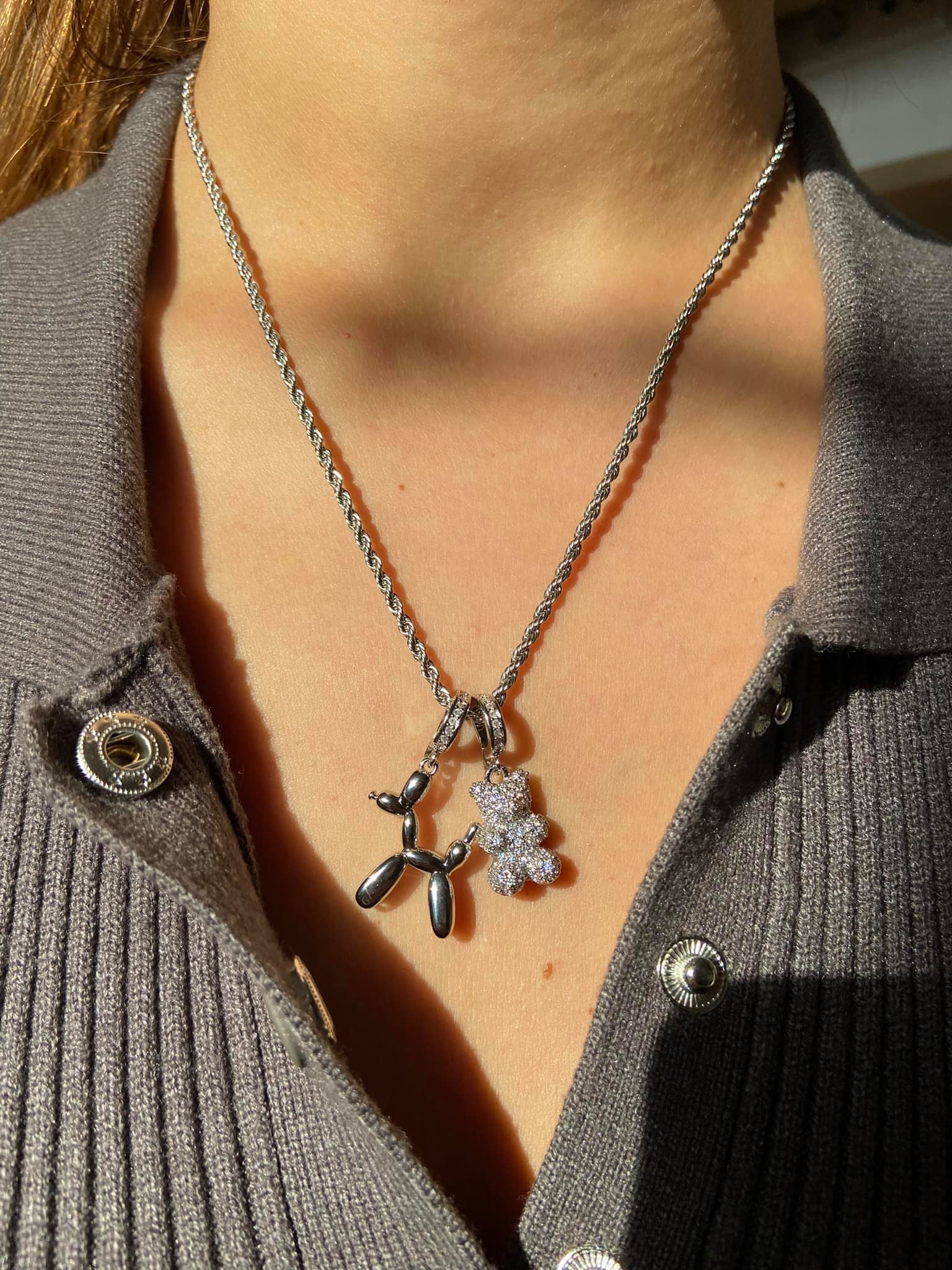 Wähle zwischen einem klassisch silberfarbendem, oder einem mit Zirkoniasteinen besetzten Anhängerverschluss aus Kupfer.