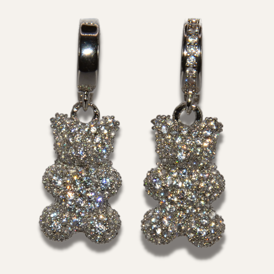 Die Bären bestehen aus Kupfer, mit silberner Farbe überzogen und Zirkoniasteinen besetzt.
