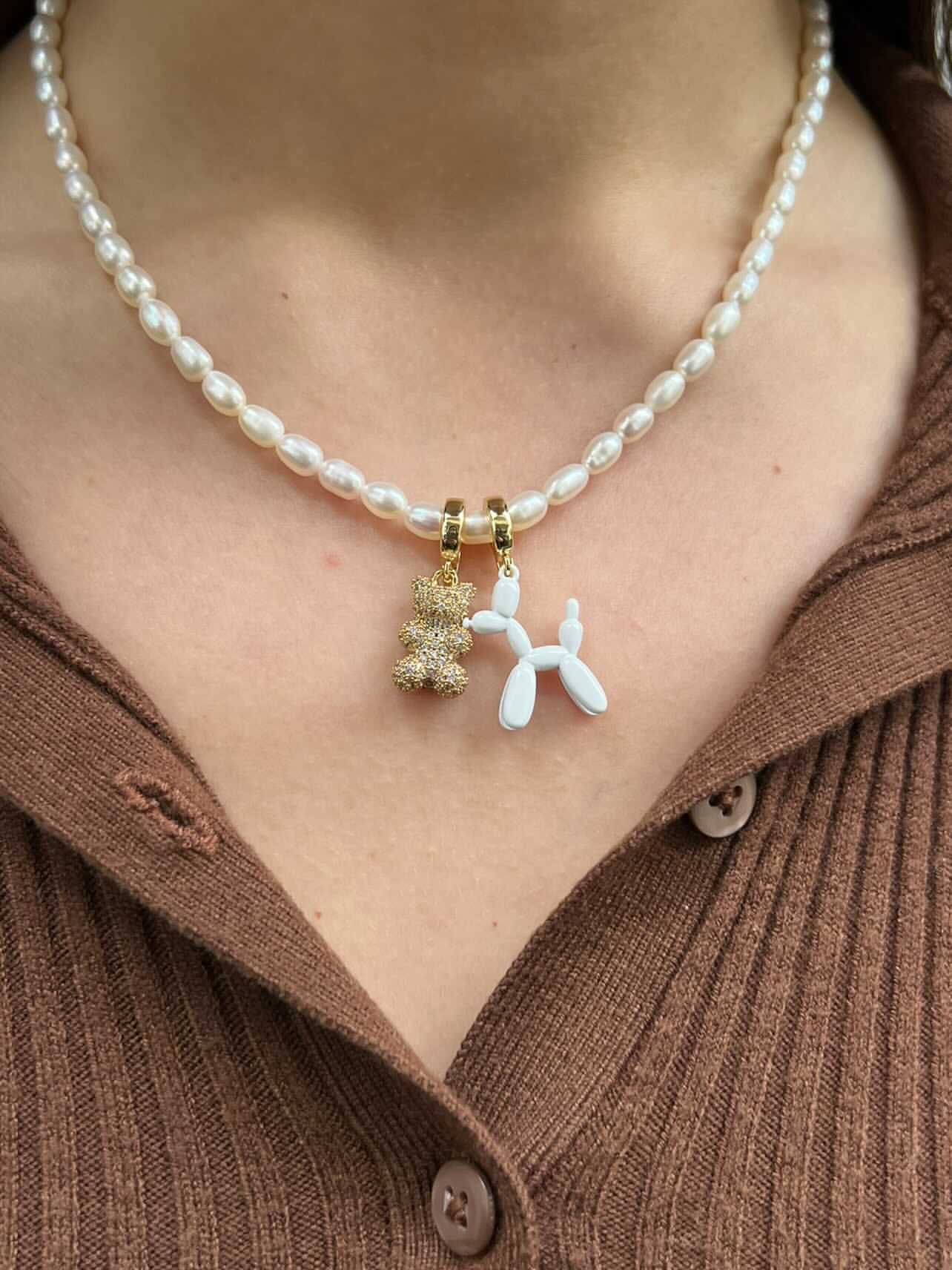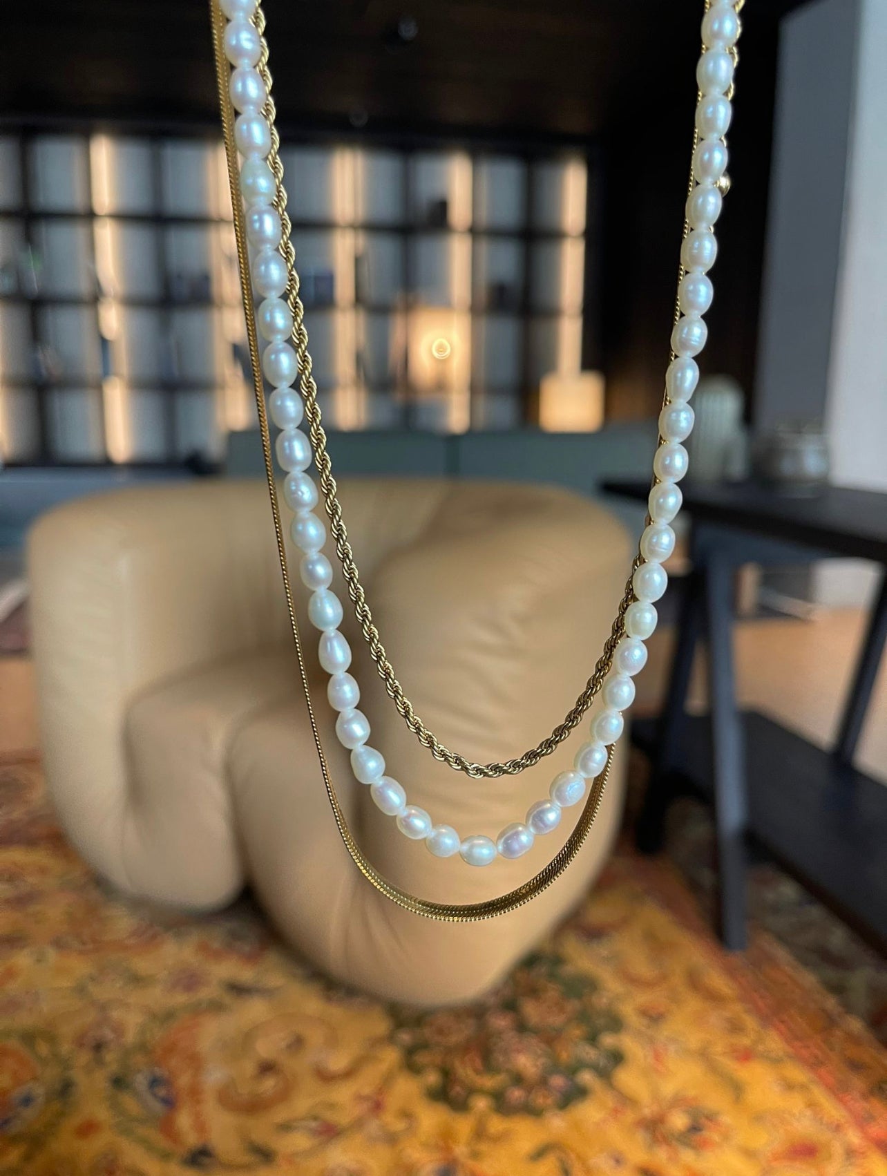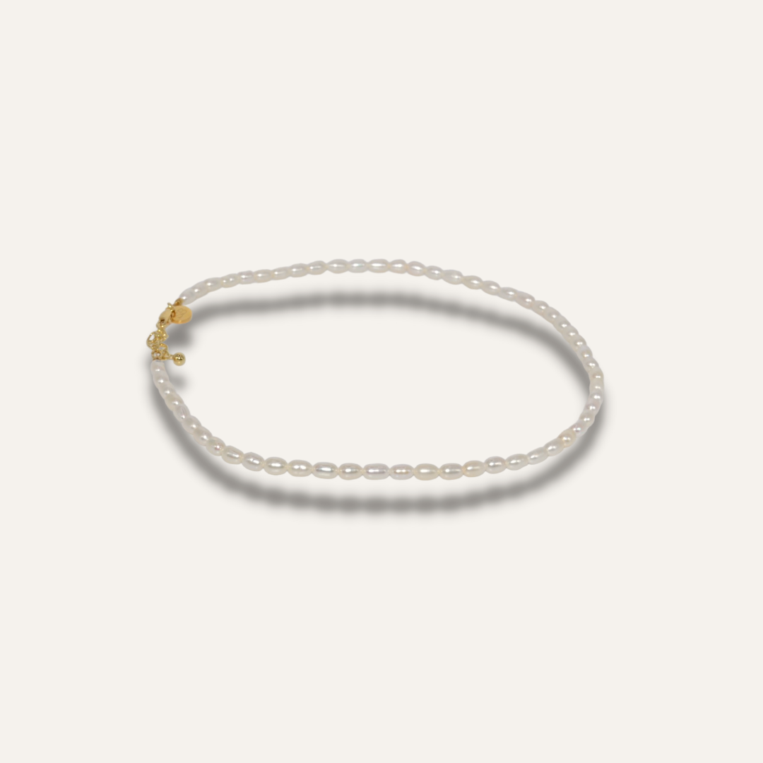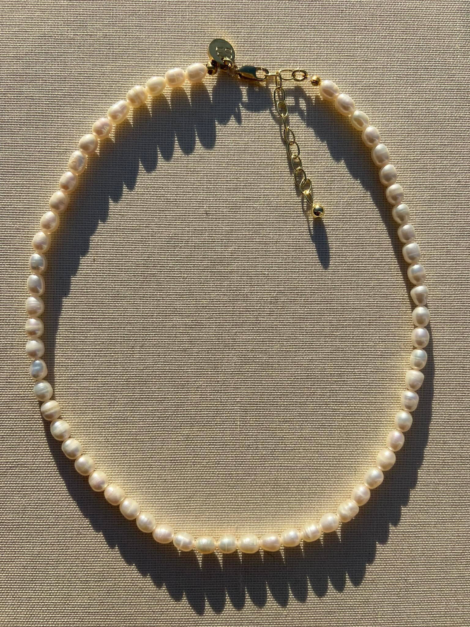 Halskette aus echten Süßwasserperlen mit 18 k vergoldetem Doublé Karabinerverschluss.